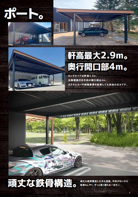 鉄骨式カーポート 強い!カッコいい!めちゃくちゃ広い!鉄骨式カーポート鉄骨式カーポートB-CANOシリーズ カタログ PrevNext01234 お問い合わせフォーム タケゾーファーム出雲店住所:〒693-0015島根県出雲市大津朝倉1-7-5(グッディ北部店さん東隣) 定休日:毎週火曜・水曜日夏季休暇、冬季休暇あり